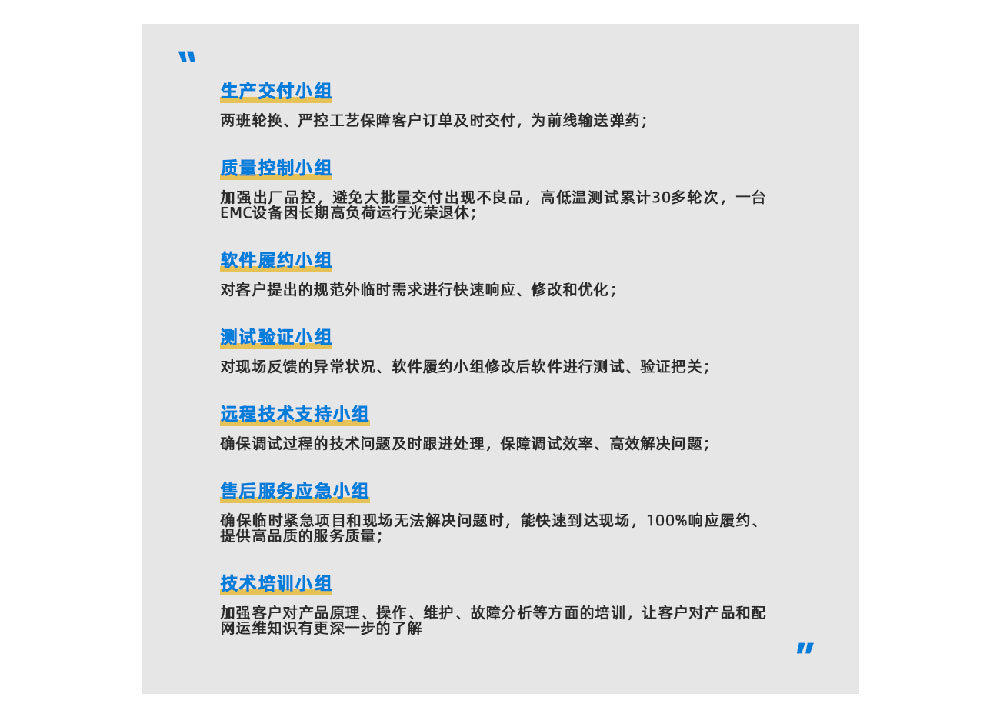 以“通過(guò)5+2區域所有地市的入網(wǎng)檢測、一級重點(diǎn)保障區域服務(wù)響應率100%(廣州服務(wù)響應0投訴)”為工作目標,總經(jīng)理親自?huà)鞄?,制造部、電網(wǎng)產(chǎn)品部、電網(wǎng)技術(shù)管理部、電網(wǎng)技術(shù)服務(wù)部、電網(wǎng)市場(chǎng)部、體系辦、中試部、測試部共同參與的行動(dòng)一觸即發(fā),多個(gè)專(zhuān)項工作組立刻高速運轉: