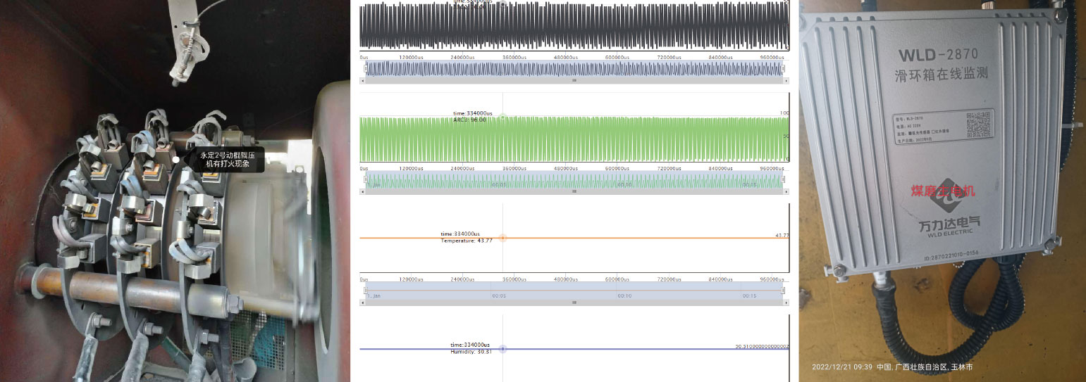 主要用于高壓繞線(xiàn)電機滑環(huán)監測,如堆料場(chǎng)取料機、港口碼頭裝卸機等動(dòng)設備的滑環(huán)(箱)在線(xiàn)監測。