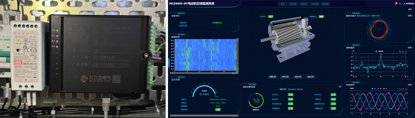 電機缺陷診斷裝置通過(guò)采集電機運行時(shí)的電壓、電流數據,通過(guò)內置高性能Arm?Cortex?-M4處理器實(shí)現設備邊緣計算。裝置具備數據采集、特征分析、故障診斷等功能,可實(shí)現設備連續不間斷的監測,助力企業(yè)生產(chǎn)安全平穩運行。