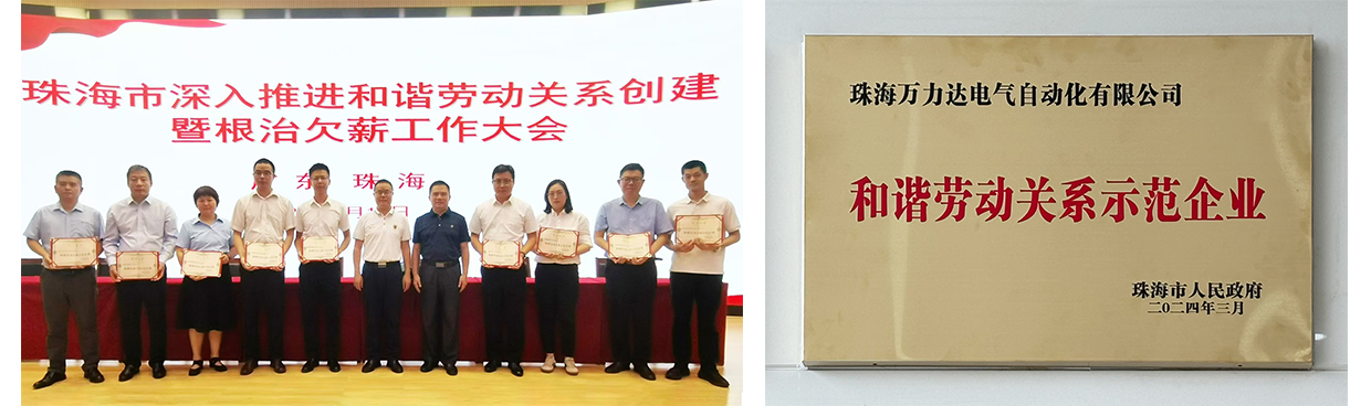 日前,珠海市深入推進(jìn)和諧勞動(dòng)關(guān)系創(chuàng )建活動(dòng)暨根治欠薪工作大會(huì )召開(kāi),會(huì )上萬(wàn)力達電氣作為“2023年珠海市和諧勞動(dòng)關(guān)系示范企業(yè)”之一,被授予牌匾和證書(shū)。這是對萬(wàn)力達電氣長(cháng)期以來(lái)致力于構建良好工作環(huán)境、促進(jìn)員工與企業(yè)共同發(fā)展的充分肯定。