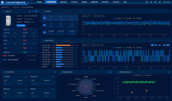 在開(kāi)關(guān)柜內,部署了智能在線(xiàn)監測系統,能夠實(shí)時(shí)監測關(guān)鍵設備的運行狀態(tài),包括斷路器分合閘電流、儲能電機電流以及柜內溫度等數據。通過(guò)數據的實(shí)時(shí)采集與分析,系統能快速診斷設備故障,并提前預警潛在風(fēng)險,確保設備長(cháng)期穩定運行,減少停機時(shí)間和維護成本。