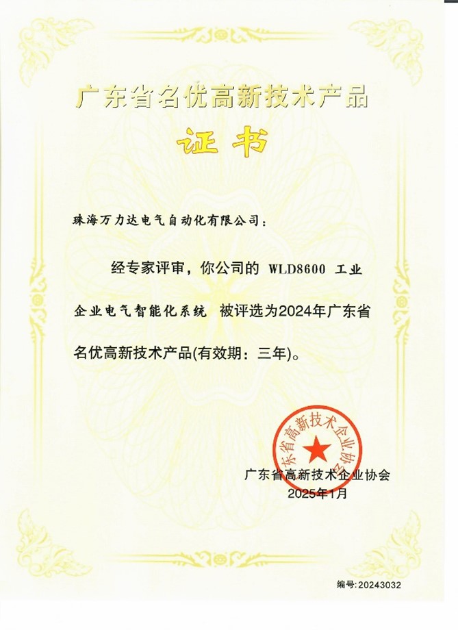 近日,珠海萬(wàn)力達電氣技術(shù)股份有限公司自主研發(fā)的“WLD8600工業(yè)企業(yè)電氣智能化系統”通過(guò)廣東省高新技術(shù)企業(yè)協(xié)會(huì )的嚴格評審,成功入選2024年廣東省名優(yōu)高新技術(shù)產(chǎn)品名錄。這一榮譽(yù)不僅是對萬(wàn)力達電氣技術(shù)實(shí)力的認可,更是對產(chǎn)品在工業(yè)企業(yè)智能化領(lǐng)域創(chuàng )新價(jià)值的肯定。