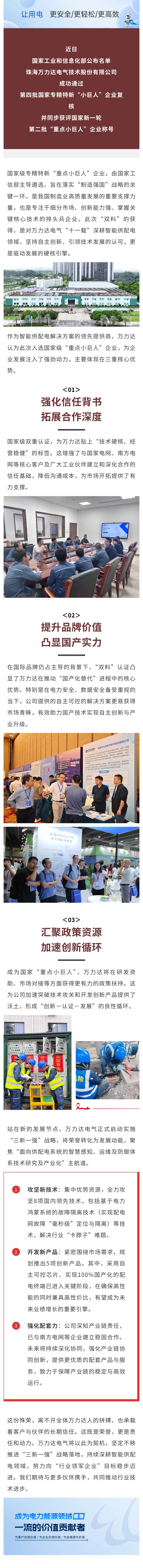 萬(wàn)力達電氣獲評國家級專(zhuān)精特新“重點(diǎn)小巨人”企業(yè)